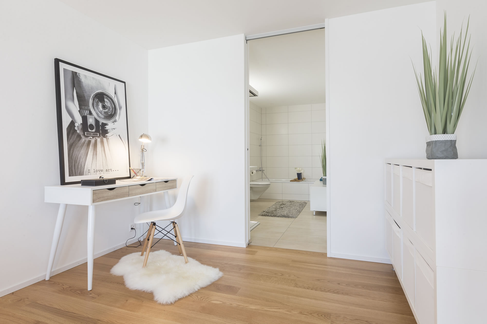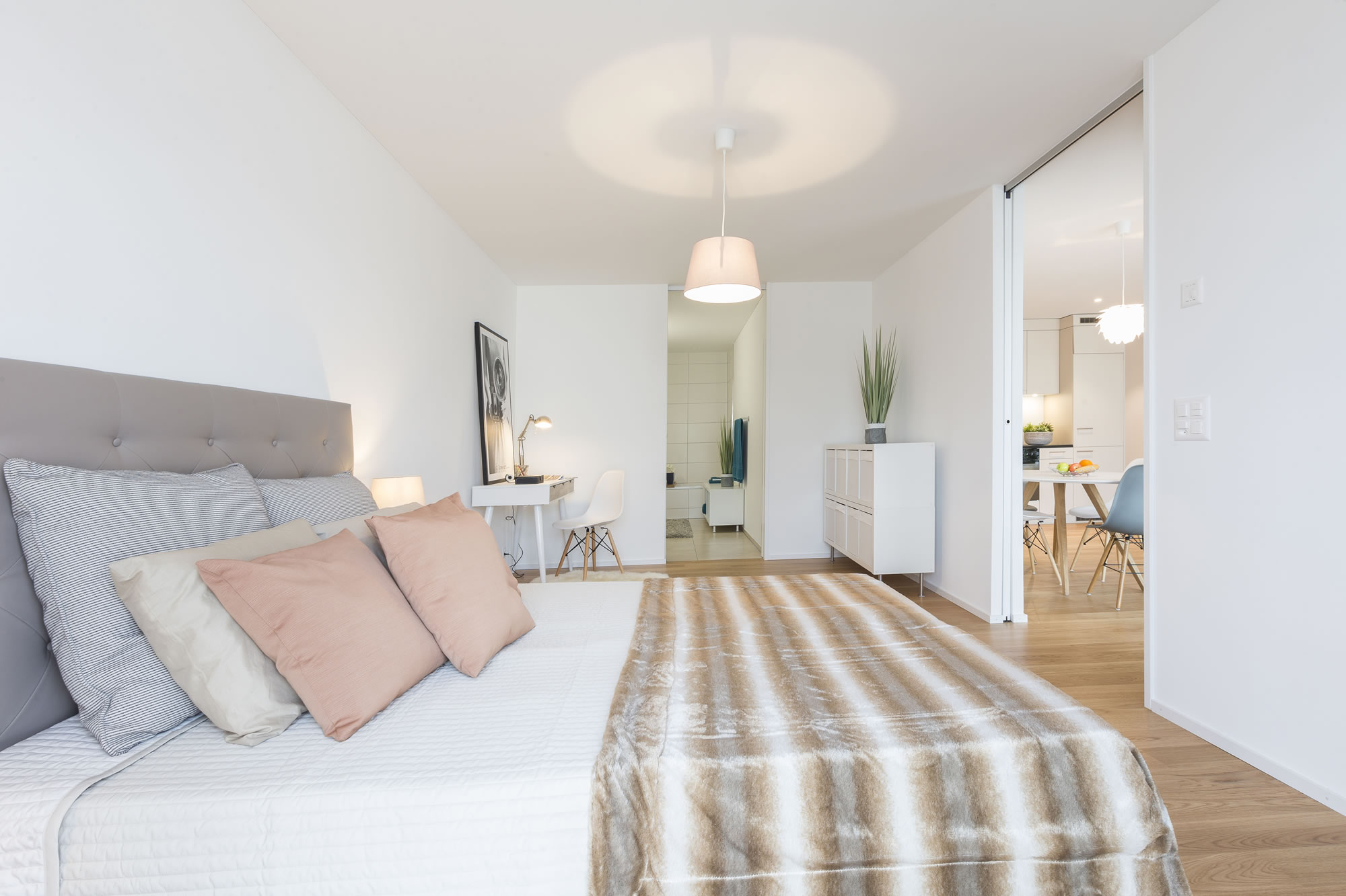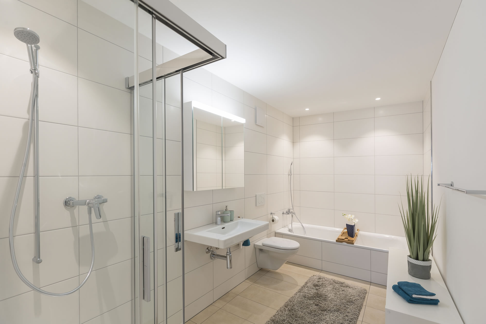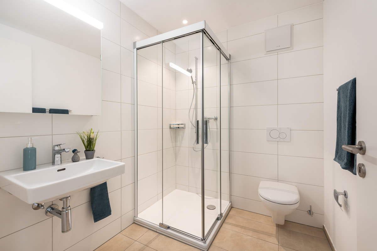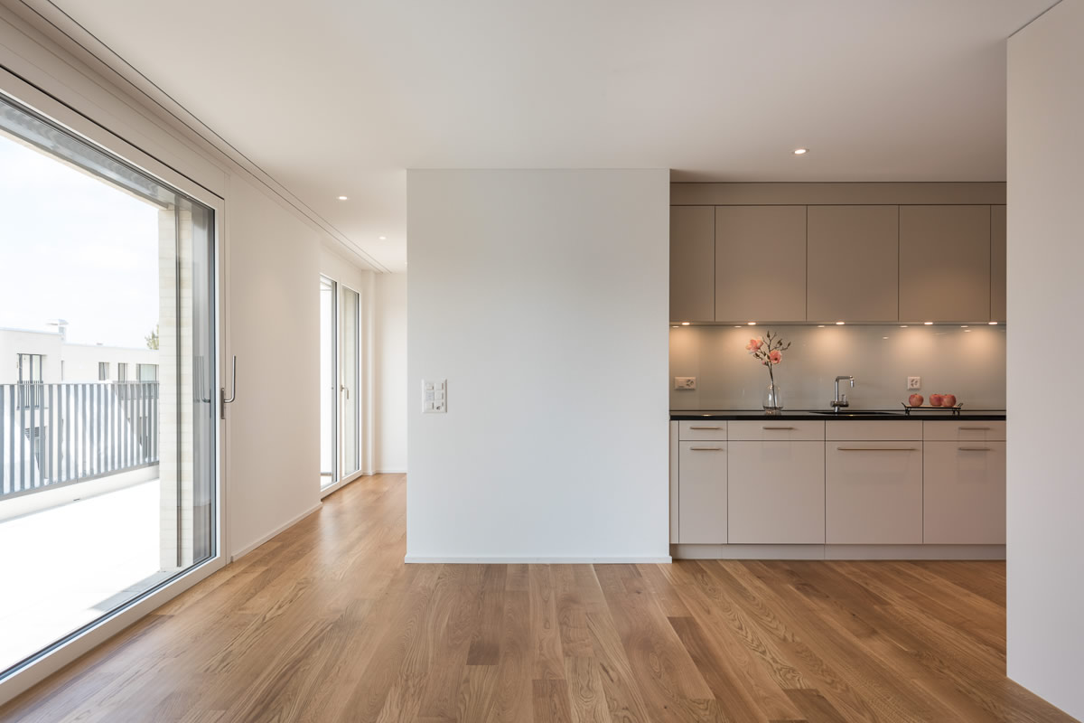 Bei den Mietwohnungen bietet sich Ihnen eine grosse Auswahl an verschiedenen Wohnungstypen. Dank der Vielzahl von Grundrissvarianten finden hier nicht nur Einzelpersonen, Paare oder Kleinfamilien, sondern auch älteren Menschen genau den Wohnraum, der ideal zu ihrem Lebensstil passt. Alle Wohnungen sind so konzipiert, dass eine bestmögliche Verbindung von Privatsphäre, Besonnung und Aussicht gegeben ist. Zudem verfügt jede Einheit über mindestens einen privaten Aussenraum – sei es der Sitzplatz im Erdgeschoss, der gedeckte Balkon in den Etagenwohnungen oder die Terrasse im Attikageschoss.
